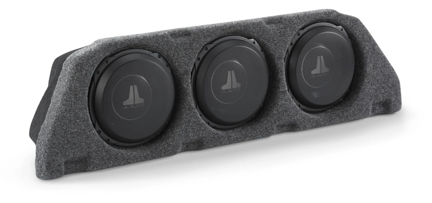 This Stealthbox® is designed for maximum sub-bass performance with its three 10TW3 JL Audio Subwoofers in a 100% fiberglass sealed enclosure. The enclosure is offered finished in a high-grade automotive carpet as well as an unfinished (primered) option which is paint-ready to coordinate with any installation theme.